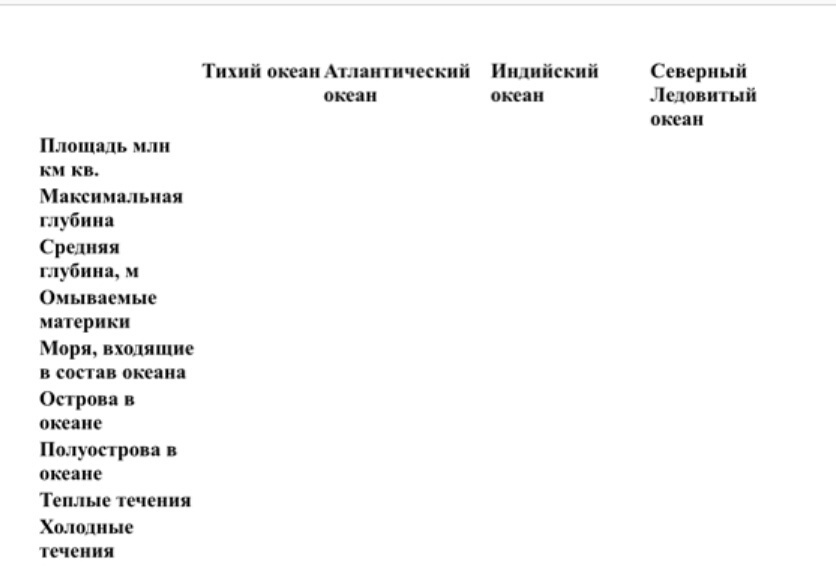 помогите пж.СРОЧНО!!МНОГО БАЛЛОВ!!! ФОТО ВНУТРИ (нужно все про эти океаны)