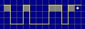 Робот движется вдоль стены, профиль которой показан на рисунке, от начального положения (◊) до конца стены. Необходимо закрасить все внутренние углы стены, как показано на примере. Размеры стены могут быть произвольны