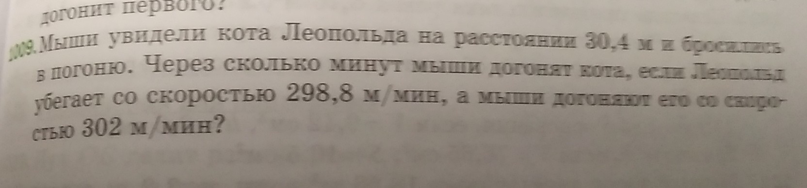 Найдем время: 30,4:3,2=9, 5 мин мыши догонят кота.