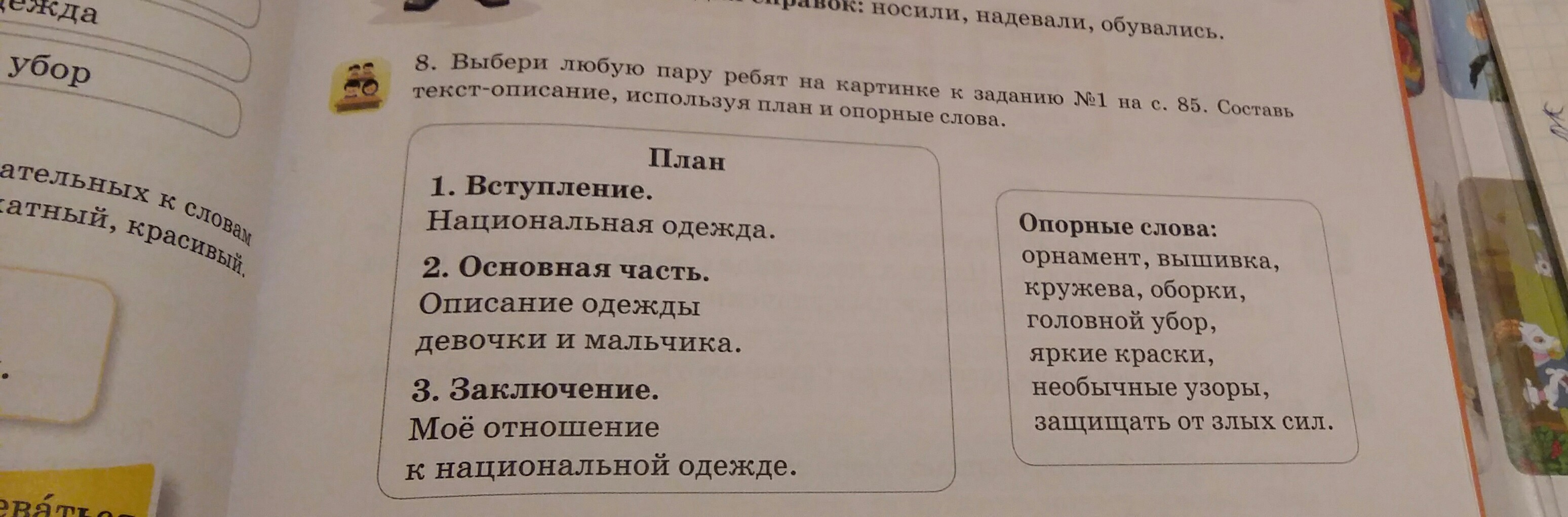 В 3 пункте пишешь своё мнение о национальной одежде.