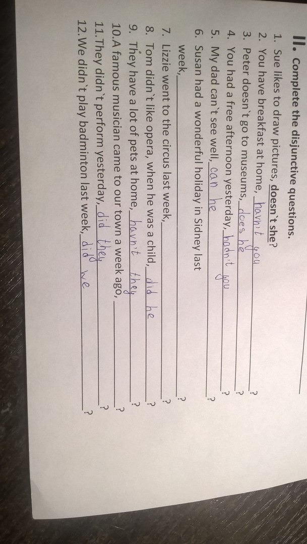 6 Susan had a wonderful holiday in Sidney last week, didn't she?
