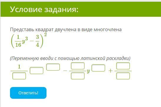 Представь квадрат двучлена в виде многочлена (Дроби)