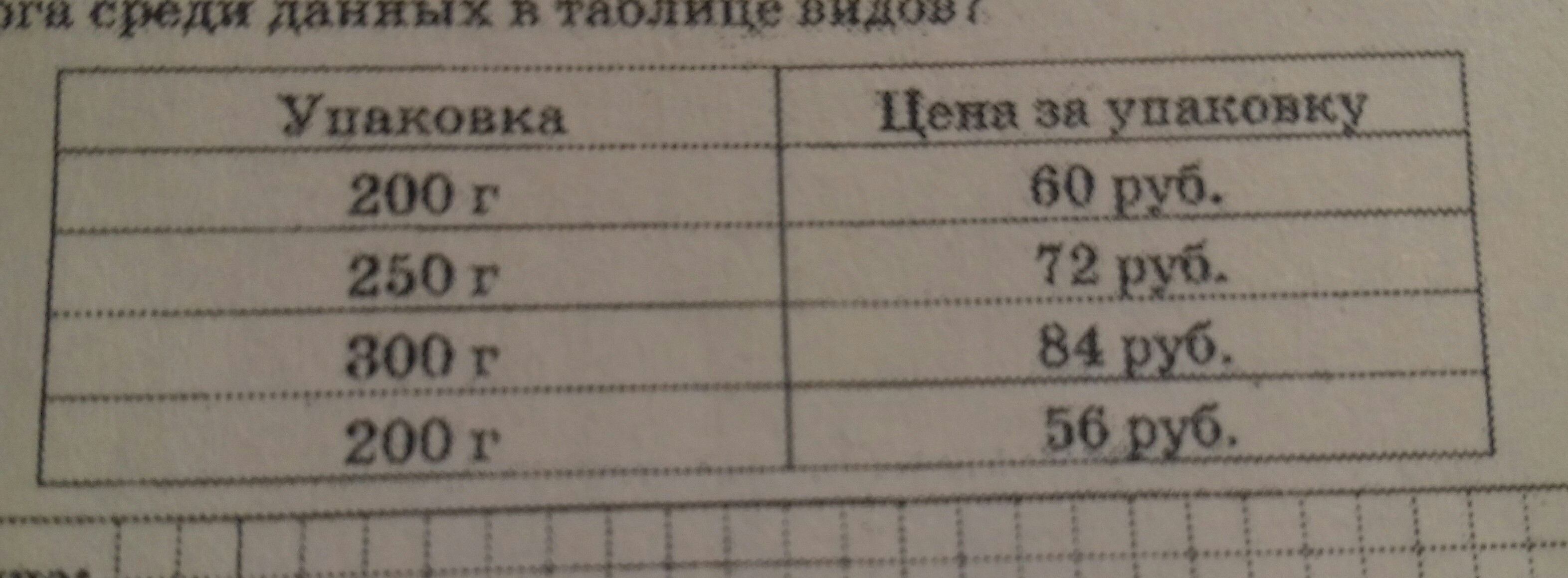 помогите пожалуйста , скажите решение . В магазине продаётся несколько видов творога в различных упаковках и по различной цене какова наименьшая цена за килограм творога среди данных в таблице видов.