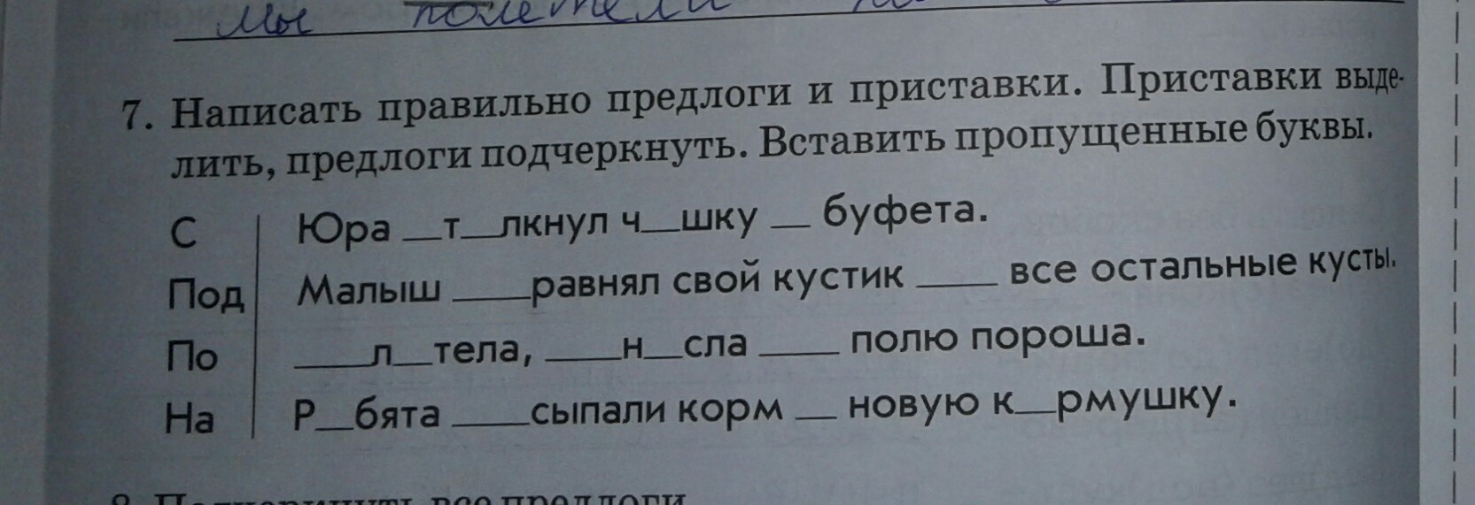 юра столкнул (приставка) чашку с (предлог) буфета