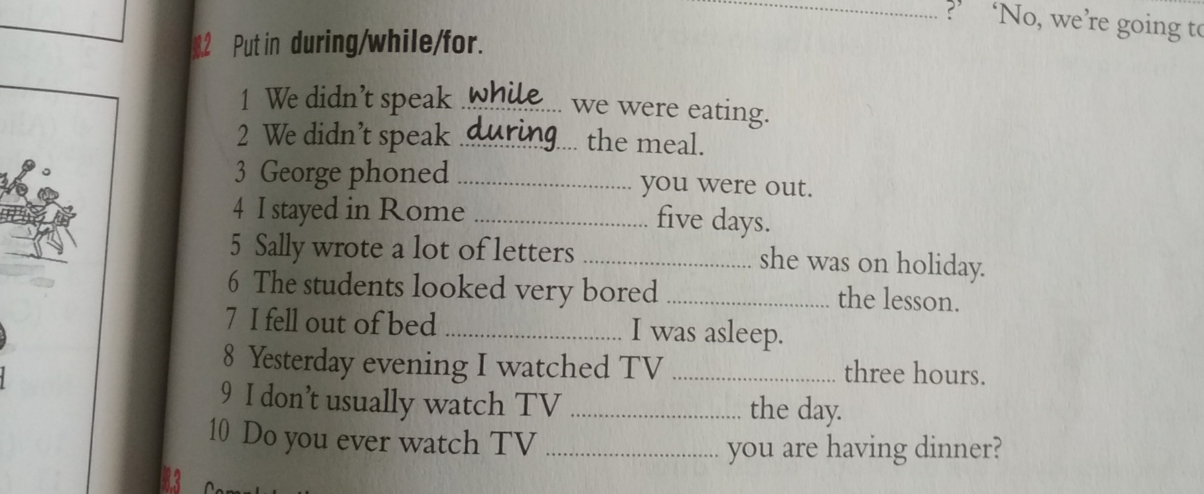 while, for, while, during, while, for, for, during.
