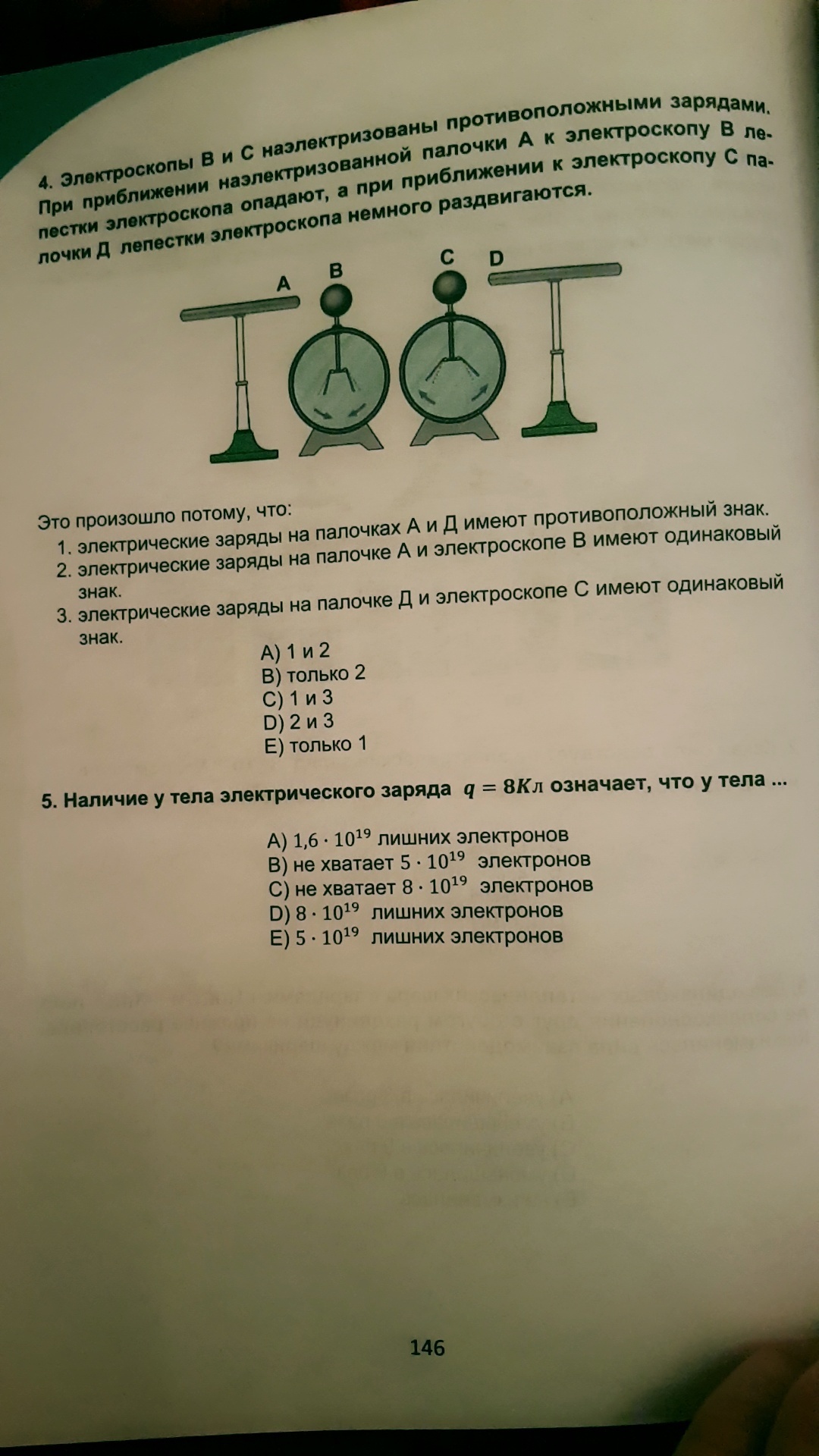 4) если электроскопы заряжены разноименно то данный опыт происходит при ответе только 3 (D и С имеют одинаковый заряд). ответ 1 и 2 не подходят. И палочки должны иметь одинаковый заряд.