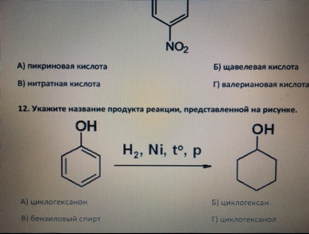 Б) циклогексан Г) циклогексанол