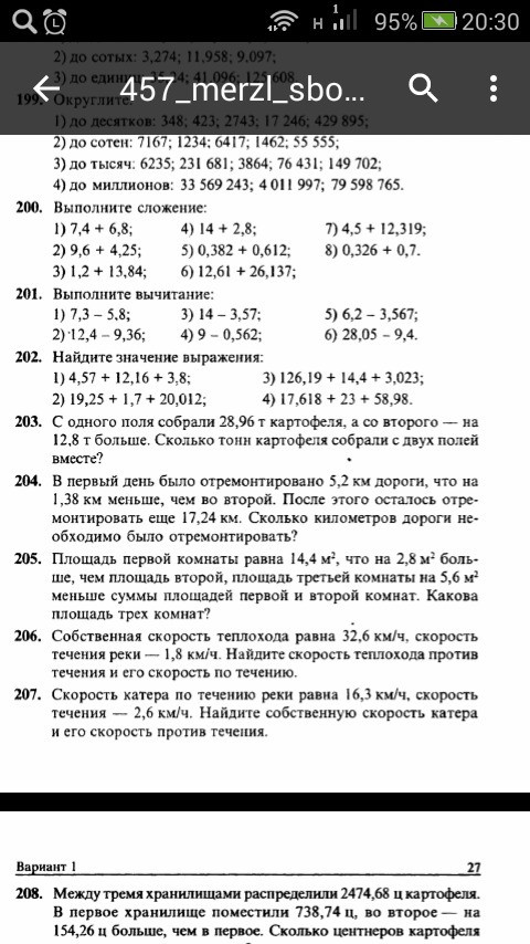 207. 16,3 км/ч - 2,6 км/ч = 13,7 км/ч - собственная скорость катера.