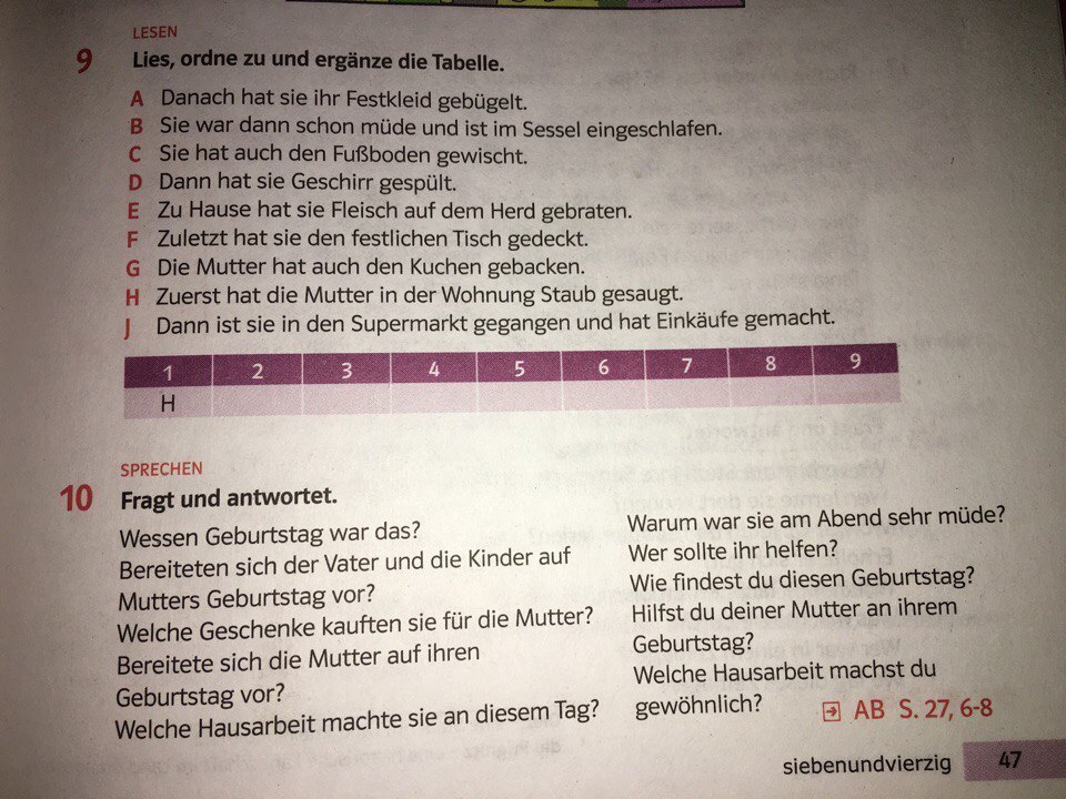 Ja, ich helfe immer meiner Mutter an ihrem Geburtstag.