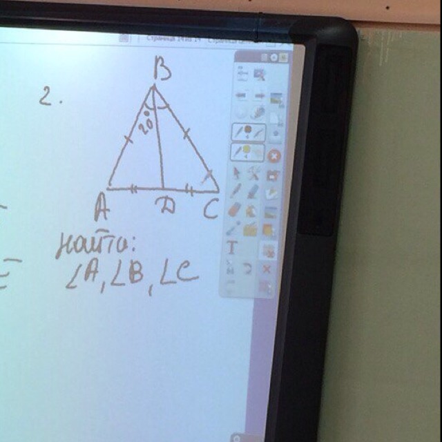 можно еще сделать так: так как AD=DC, а АВ=ВС, то треугольник АВС равнобедренный, следовательно А=С, а ВД является бессиктрисой( по свойству р/б треугольника), следовательно В=20+20=40( по св. бессктрисы) , а углы А и С будут равны 180-40=140 и 140/2=70