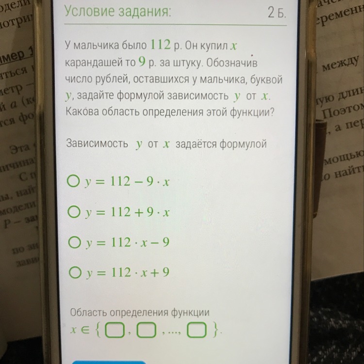 Так вот у, как число рублей, не может быть больше 112, так как изначально всего было 112 рублей, и не может быть меньше нуля, тогда мальчик уйдёт «в минус»