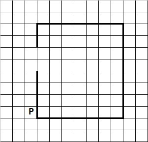 На бесконечном поле имеются четыре стены, соединённые между собой, которые образуют прямоугольник. Длины стен неизвестны. В левой вертикальной стене есть ровно один проход. Проход не может примыкать к углу прямоугольника. Точное место прохода и ширина прохода неизвестна. Робот находится около нижнего конца левой вертикальной стены, снаружи прямоугольника и выше нижней стены.