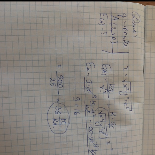 Точечный заряд 100нКл находится в начале декартовой системы координат. Определите напряженность электрического поля этого заряда в точке А (3, 4, 0.)