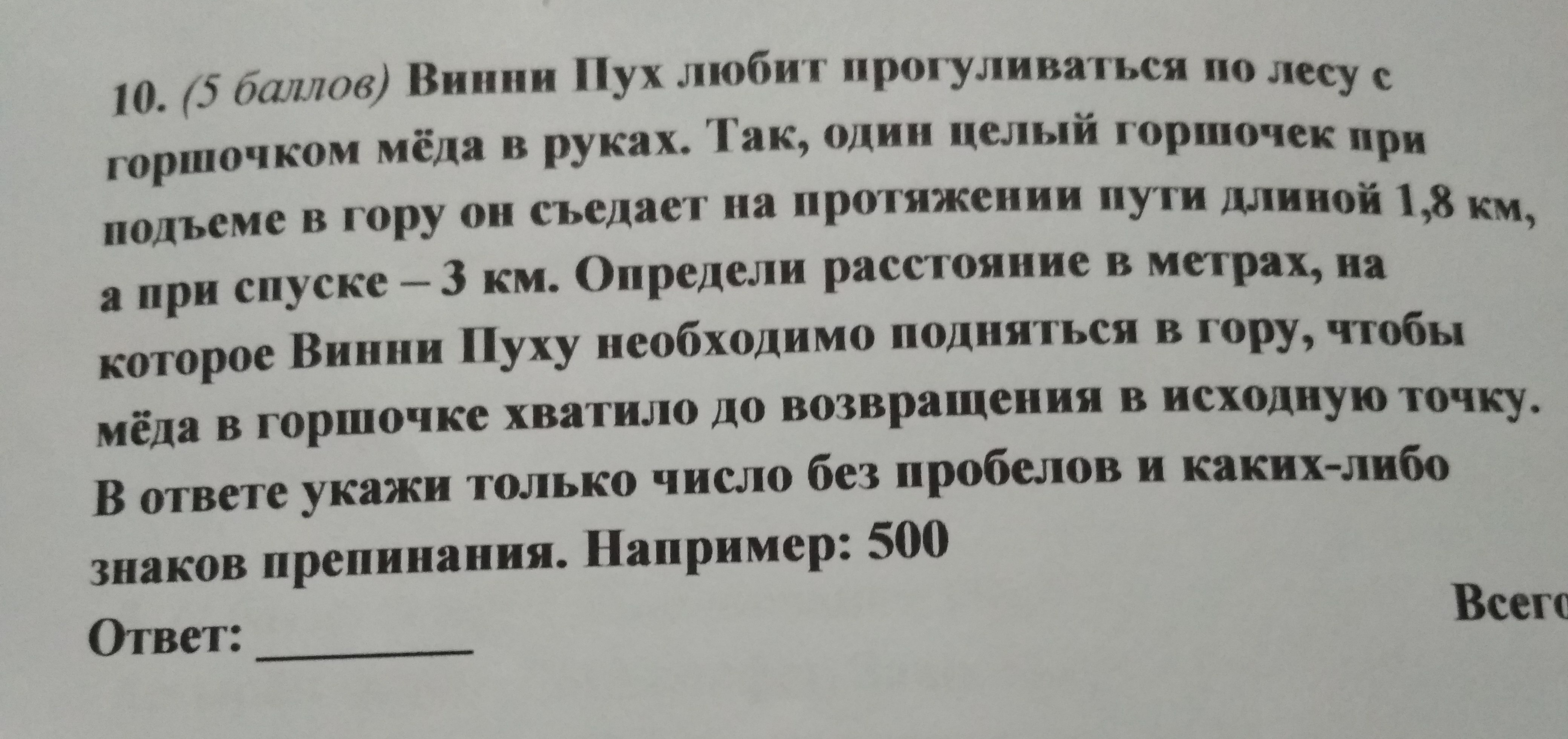 Допустим Винни должен подняться на Х км.