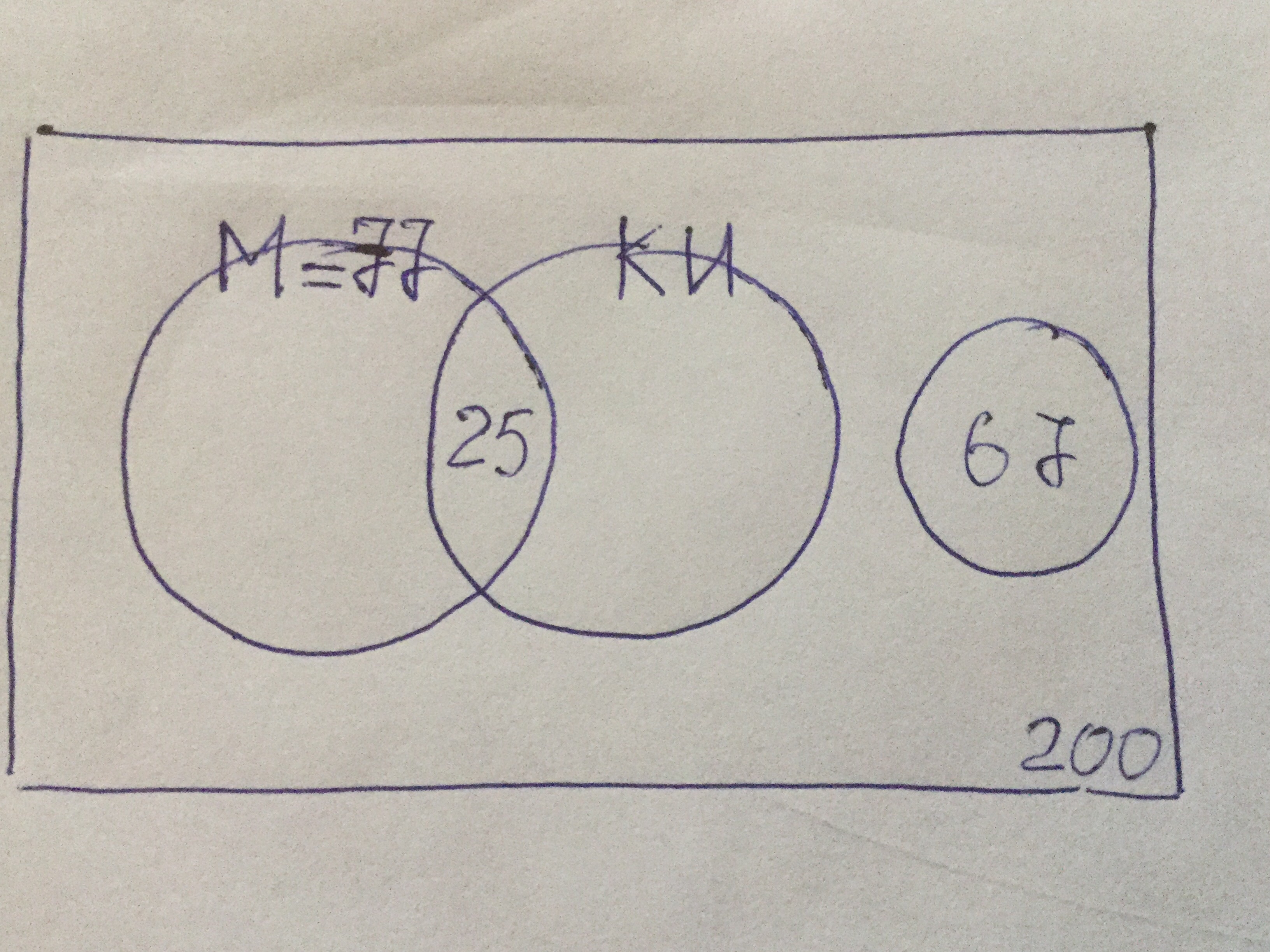 3. КИ = 200 - 67 - 77 = 56 учащихся
