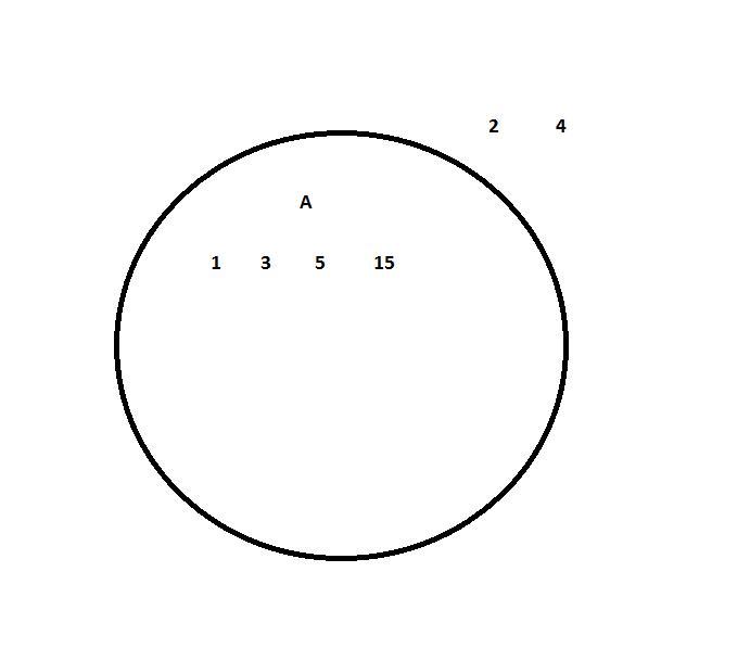 Числа 1, 3, 5 и 15 принадлежат множеству А.