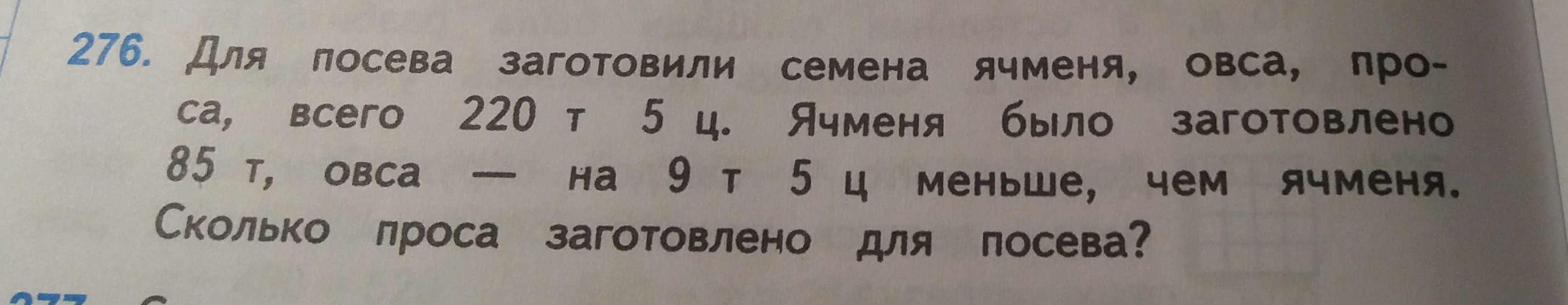 3) 220т 5ц-160т 5ц=60т - заготовлено проса. Ответ: 60т проса заготовлено для посева.