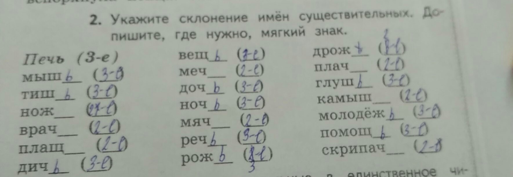 укажи склонение имён существительных.допишите,где нужно, мягкий знак.посмотрите пожалуйста сделано правильно
