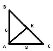 По свойству высоты прямоугольного треугольника, проведенной из прямого угла: СК/АС=АС/ВС (каждый катет есть средняя пропорциональная величина между всей гипотенузой и проекцией данного катета на гипотенузу)⇒СК=АС²/ВС=64/10=6,4.ВК=ВС-СК=10-6,4=3,6. АК из ΔАКС: