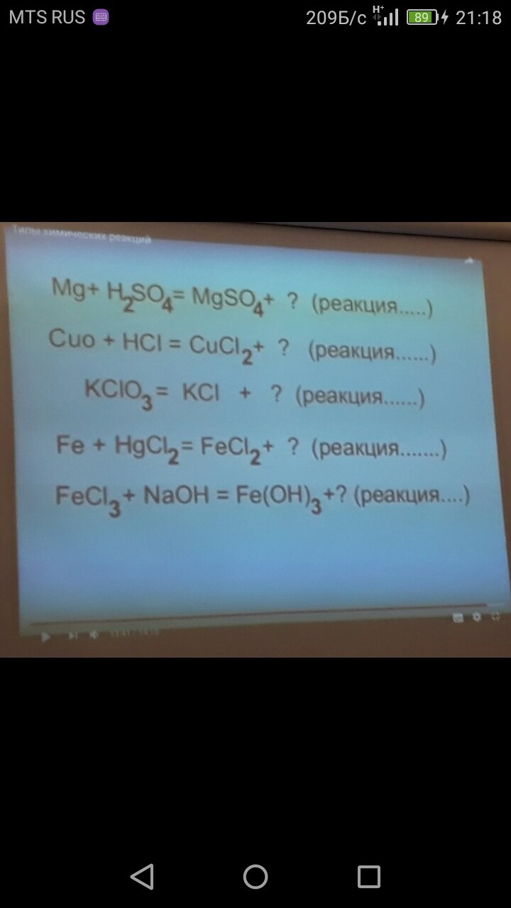 Fe+HgCI2=FeCI2+Hg (Реакция замещения)
