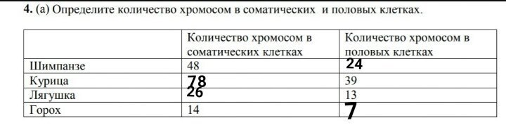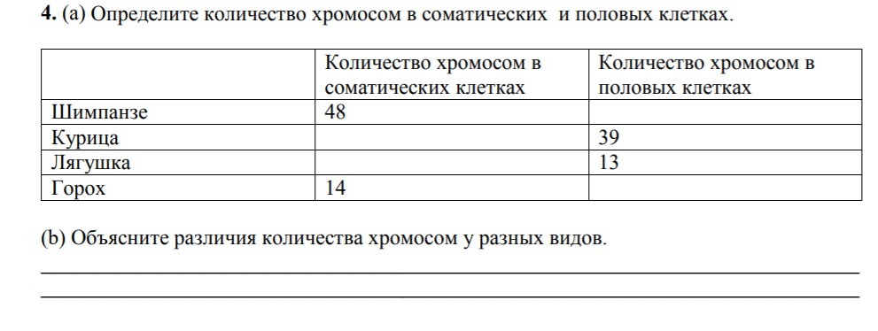 . (а) Определите количество хромосом в соматических и половых клетках.