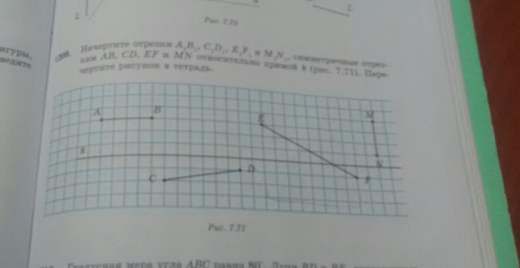 начертите отрезки А1 В1, С1 D1 , E1 F1 и М1 N1 . симетричные отрезкам АВ , СD , EF, MN относительно прямой K .... пожалуйста подробно объясните . сделайте на лесточке и сфоткайте