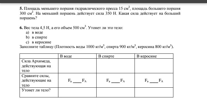 б)Fa спирта=790*10*0,0005=3,95 Н
