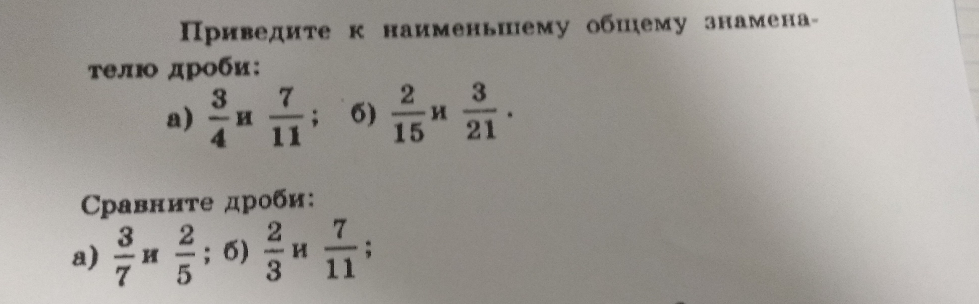 а) общий знаменатель 44 получается 33/44 и 28/44 б) НОЗ 315 получается 42/315 и 45/315 сравнить дроби а) 3/7 больше б) 2/3 больше