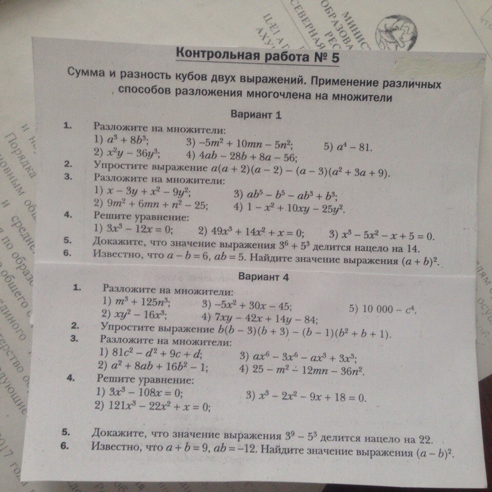 номер 1. ответы: (1) a³+8*b³ (3)-5*m²+10*mm-5*n²