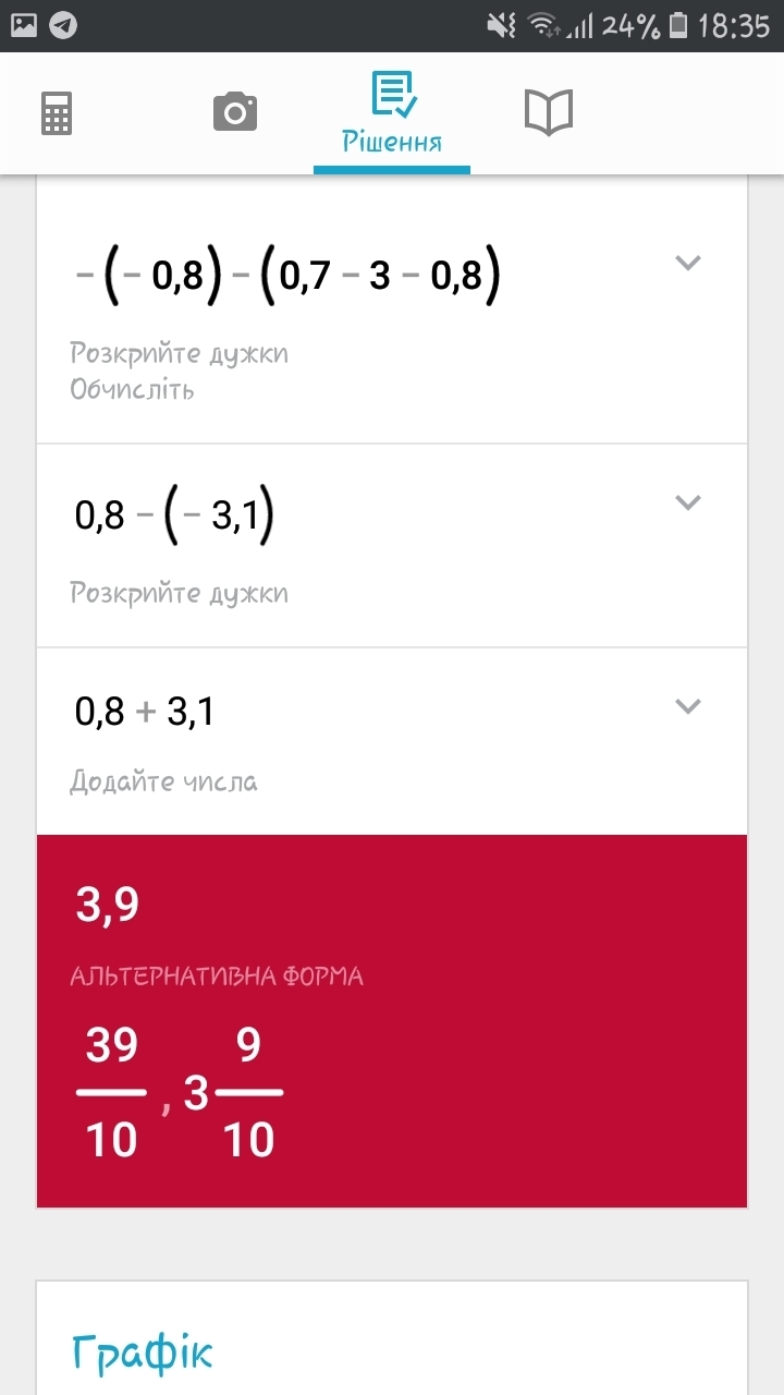 -(-0,8)-0,7+3*(-0,8)=0,8-3,1=-2,3 вот правильный ответ а 3,9 не правильный