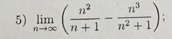 limlimits _{n to infty}(frac{n^2}{n+1}-frac{n^3}{n^2+1})= limlimits _{n to infty}frac{n^4+n^2-n^4-n^3}{(n+1)(n^2+1)}= limlimits _{n to infty}frac{-n^3+n^2}{n^3+n+n^2+1}=\\= limlimits_{n to infty}frac{-n^3}{n^3}=-1