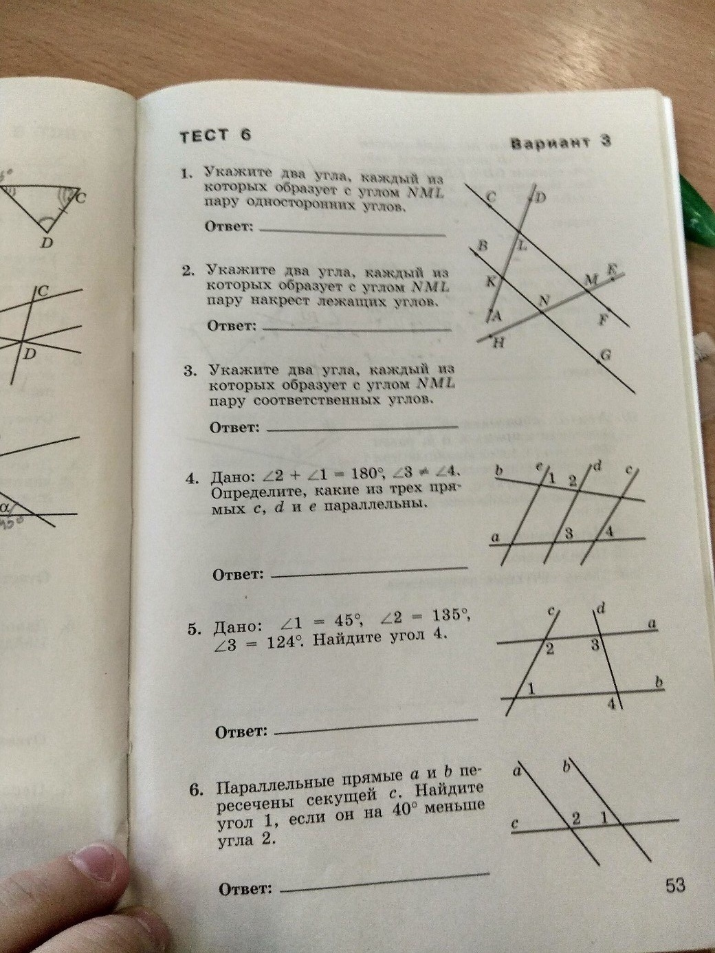 5) Углы 1 и 2 в сумме дают 180 => a параллельна b => углы 3 и 4 равны, т.е. угол 4 равен 124.