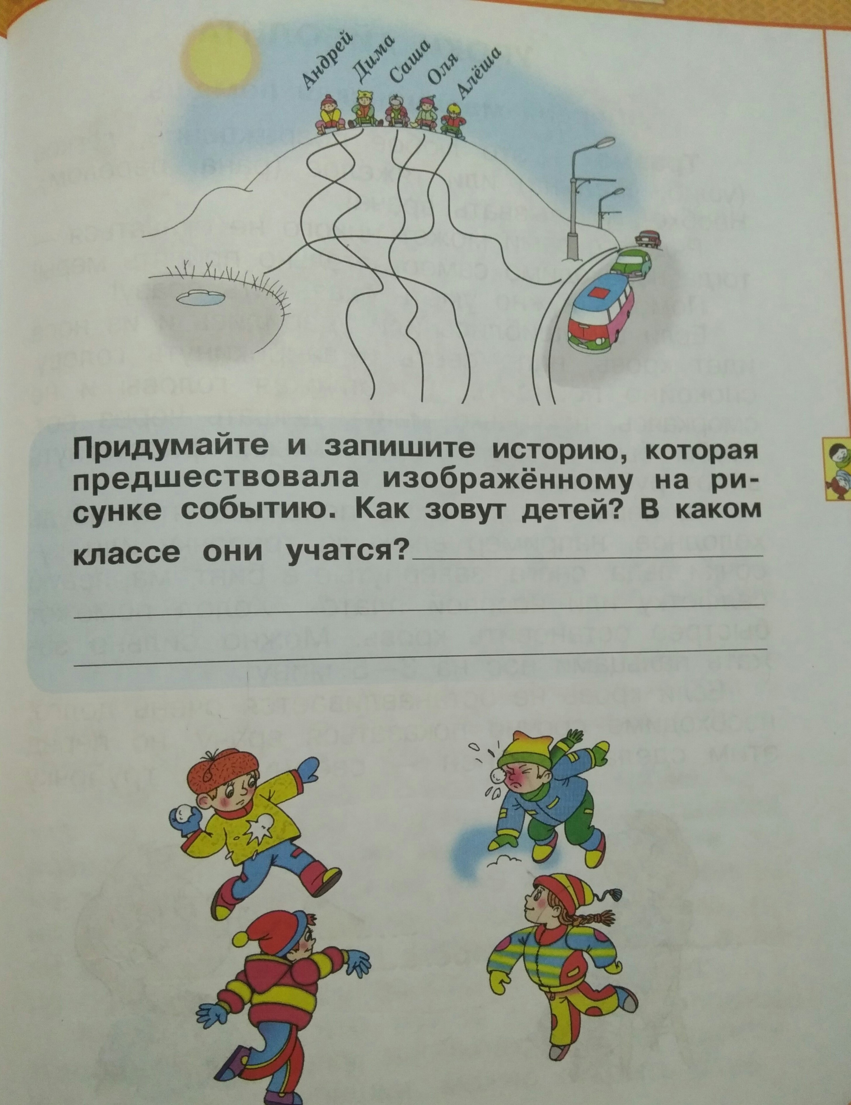 Андрей, Дима, Саша, Оля и Алёша решили покататься. Все покатились а Саша поехал и попал на полезную дорогу. Мальчики из 3,4 класса