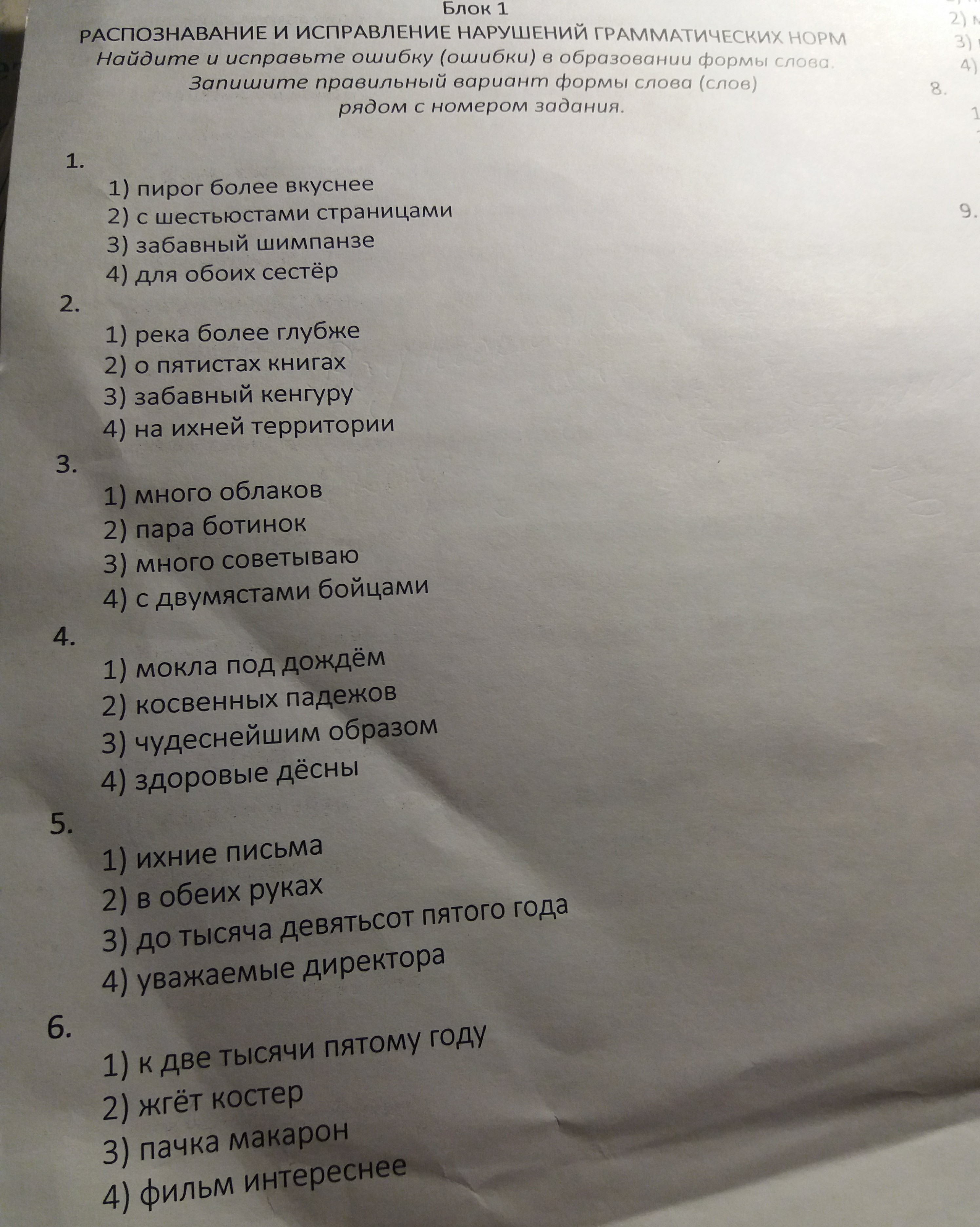 помогите пожалуйста. номера 1 2 3 4 5 и 6. они простые.(найдите и исправьте ошибку (ошибки) в образовании формы слова. запишите правильный вариант формы слова рядом с заданием)
