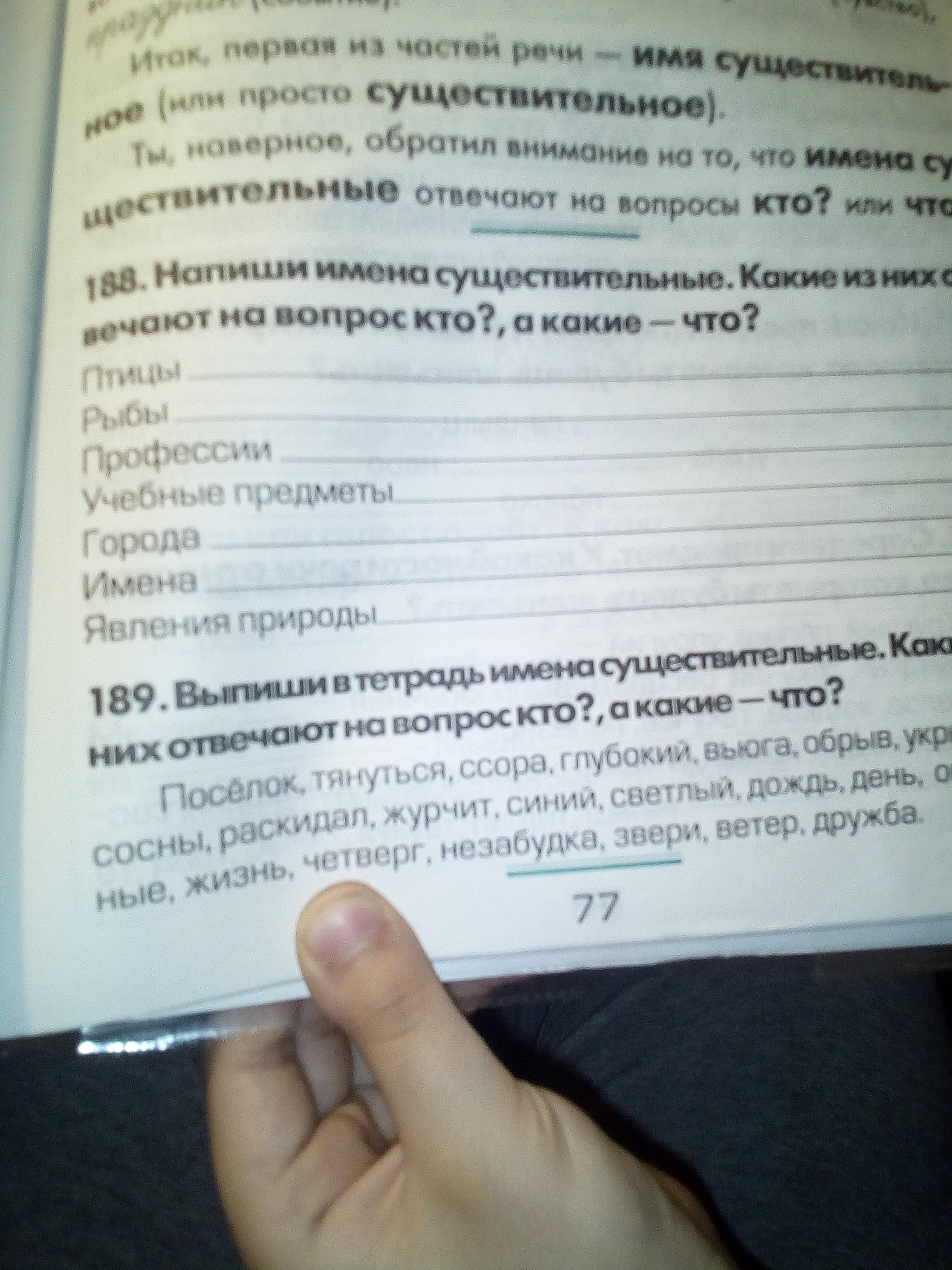 Напишите имена существительные. Какие из них отвечают на вопрос кто?,а какие что?