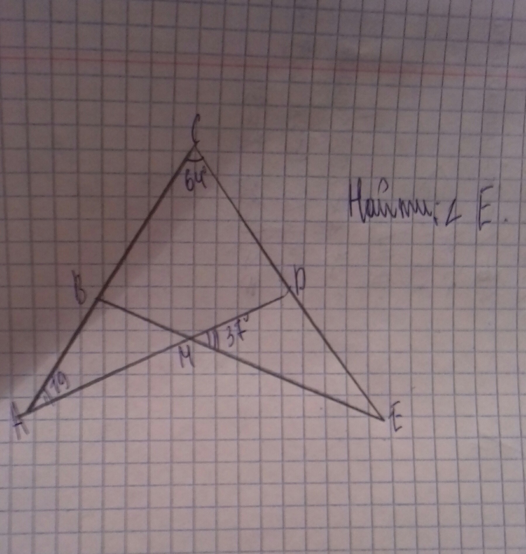Угол Е = 180° - 83° - 37° = 180° - 120° =60°