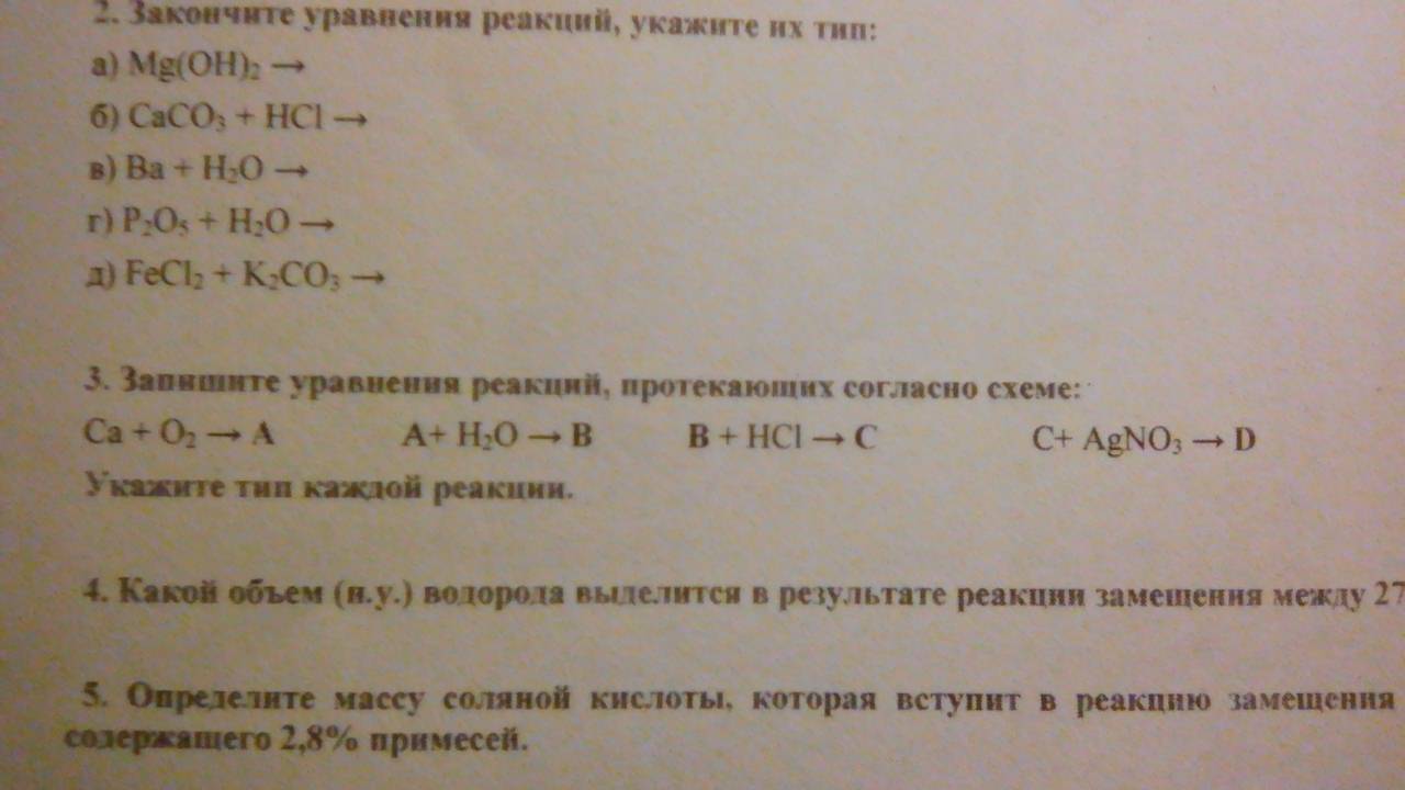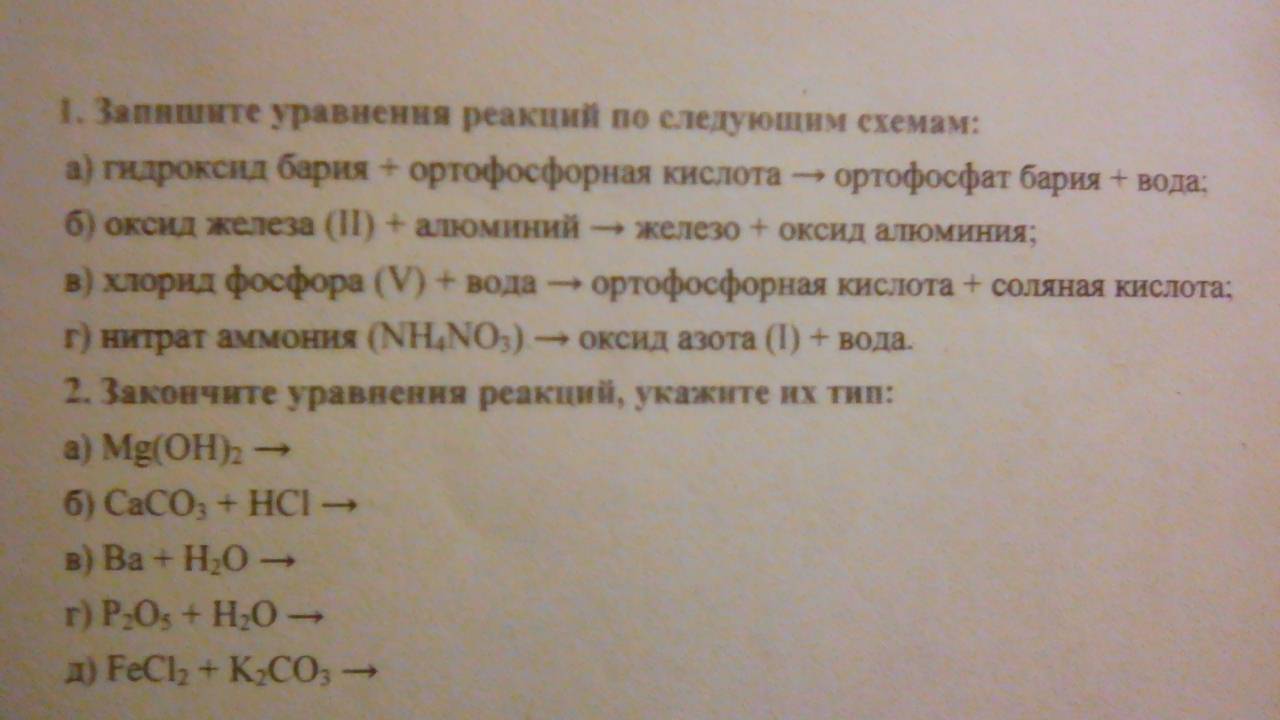 в) хлорид фосфора (V) + вода = ортофосфорная кислота + соляная кислота