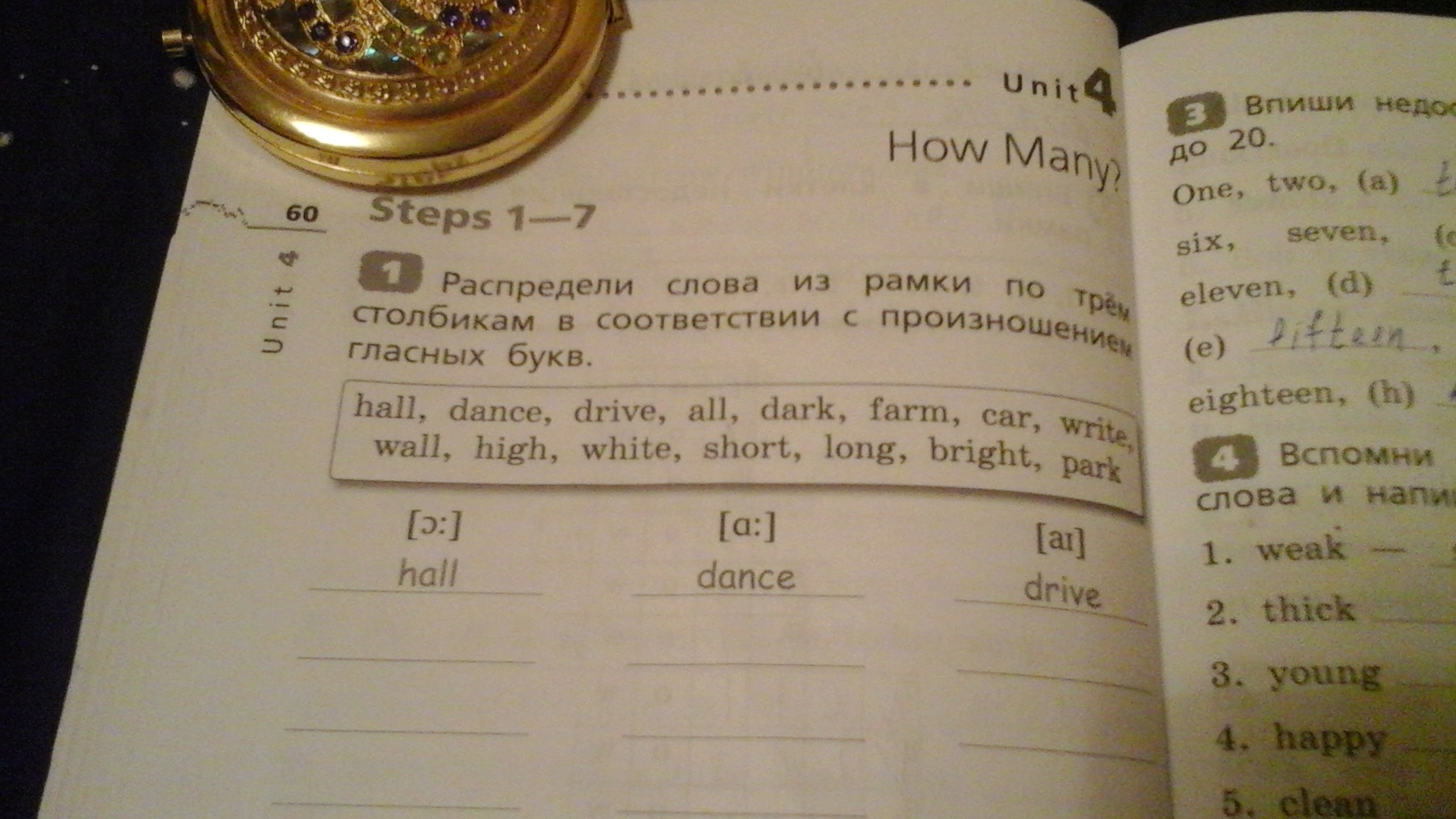 3) drive, write, white, high, bright.