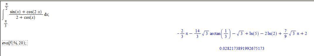 s:=s+(sin(x)+cos(2*x))/(2+cos(x));