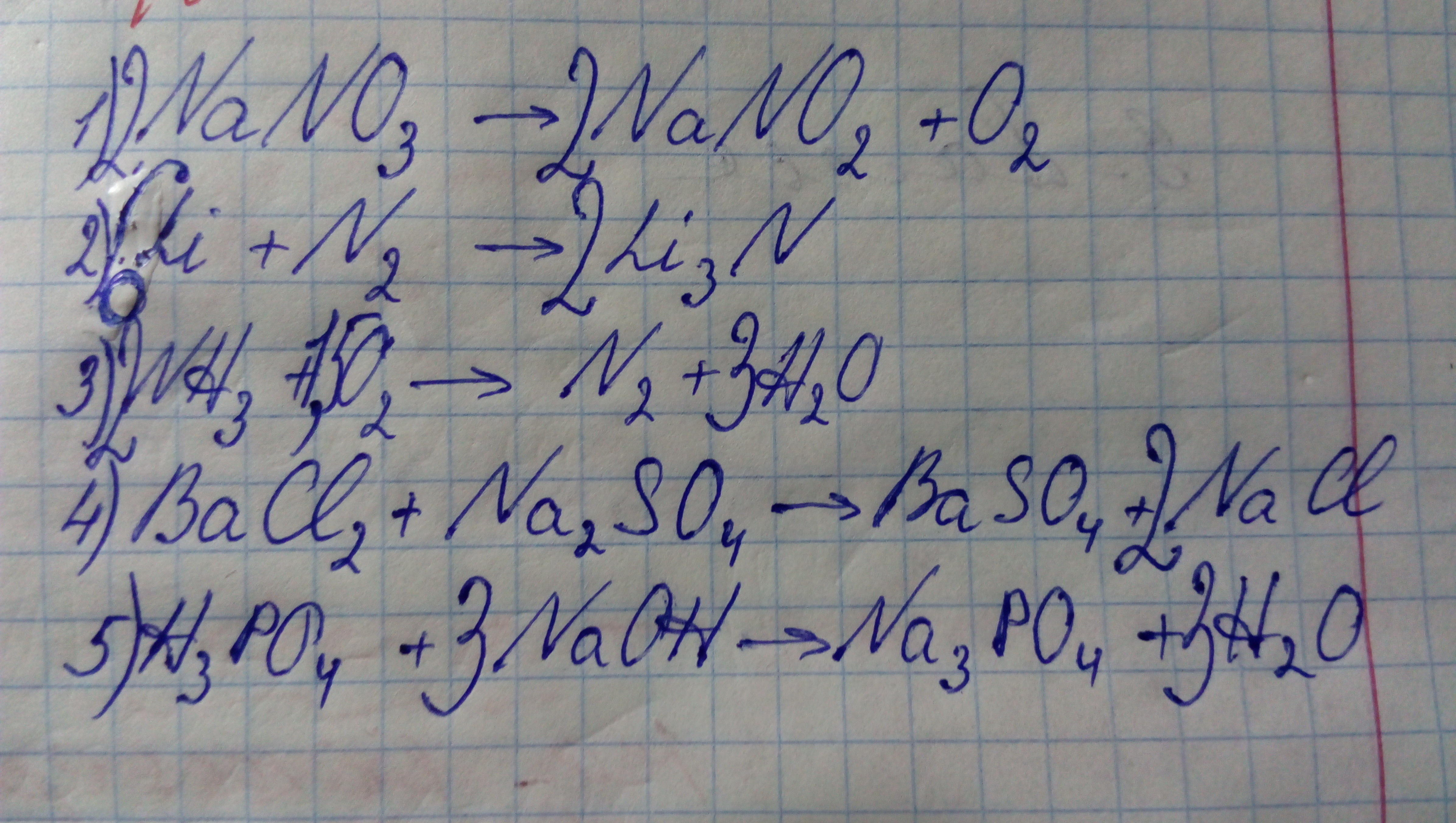5) H3PO4 + NaOH → Na3PO4 + H2O