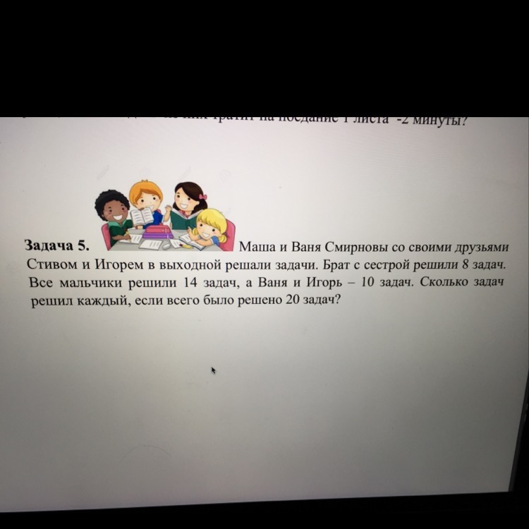 Маша и Ваня Смирновы со своими друзьями Стивом и Игорем в выходной решали задачи.