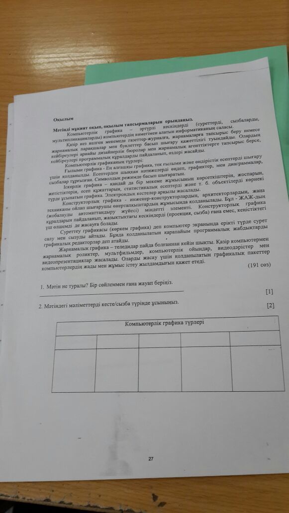 1. Компьютерлік графика тұралы мəтін жазылған.