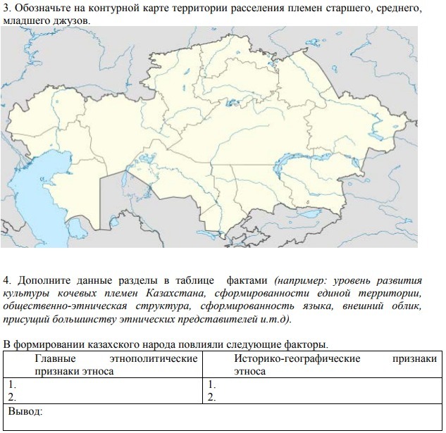 Задание 3 .Младшии жуз в западе(Обведи кружком), Средний жуз север и центральный(кружком обведи), Старший жуз юго-востоке(обведи кружком)