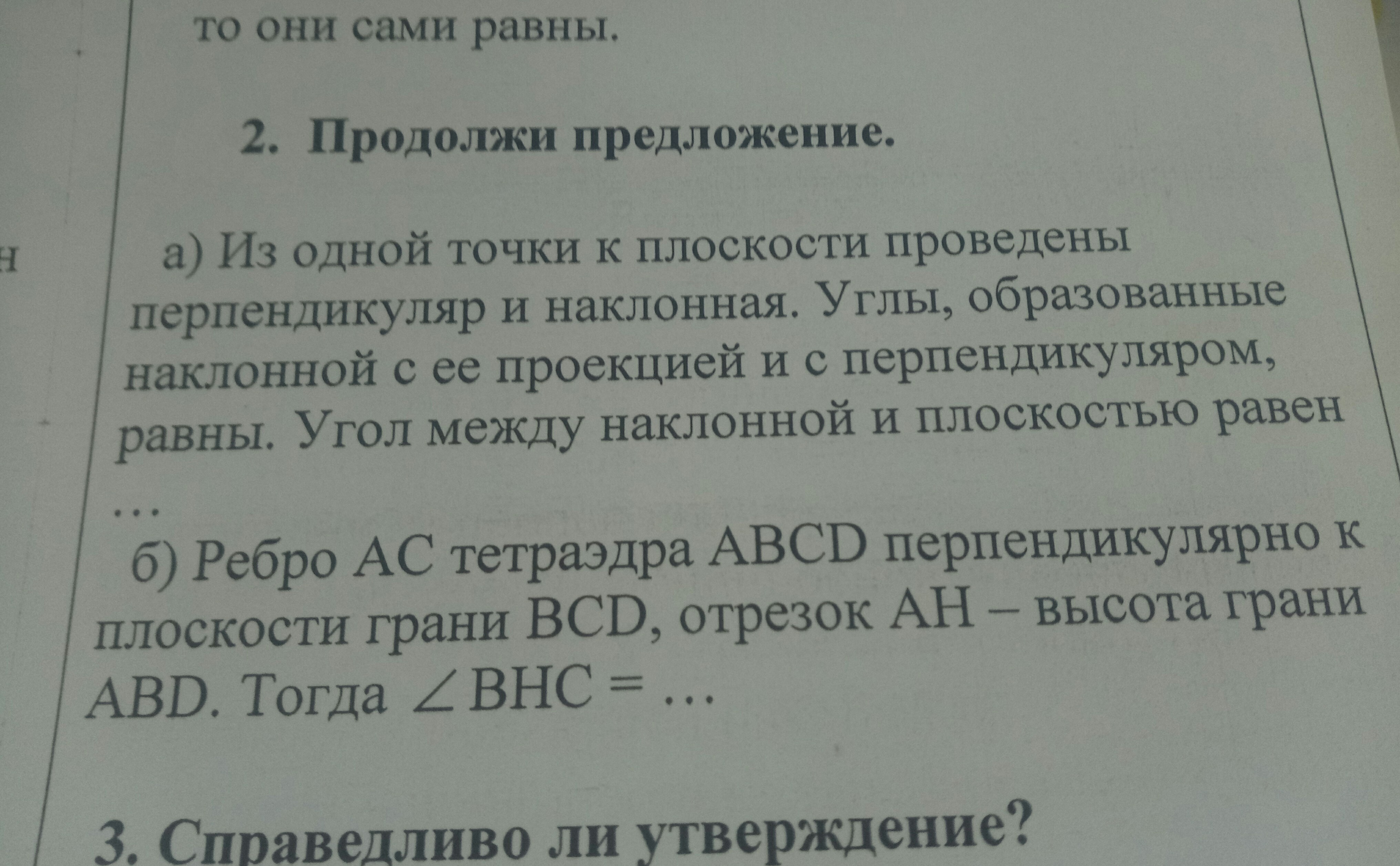 P.S. Угол между наклонной и плоскостью = угол между наклонной и ее проекцией