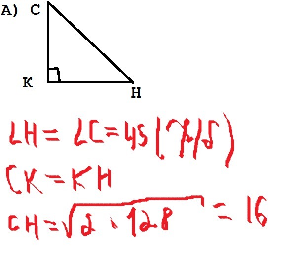 А) угол Н равен 45 градусов, КН= 8√2,найдите КС И СН
