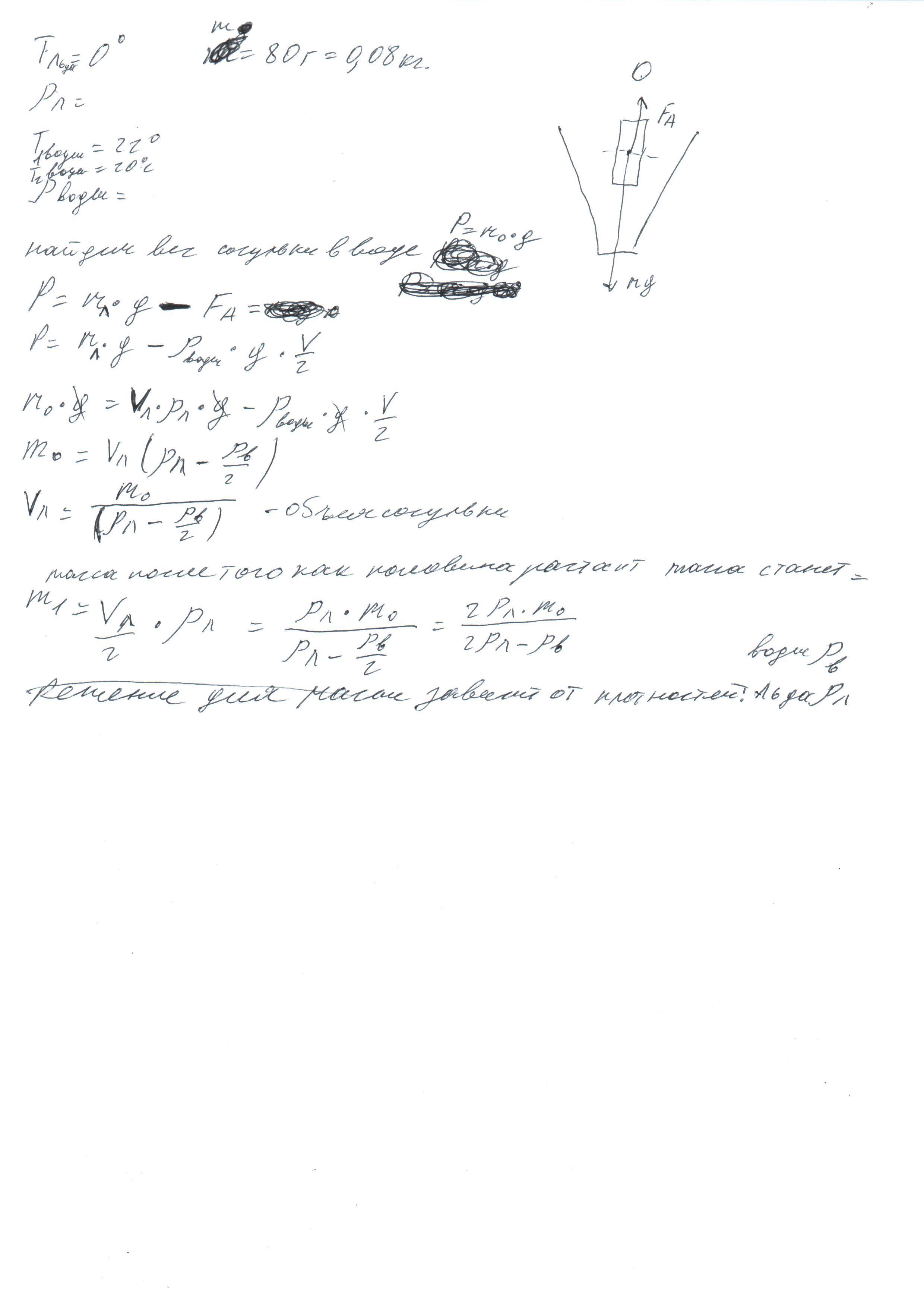 Решение вложено без расчета, так как зависит от плотности воды при данной температуре и льда.