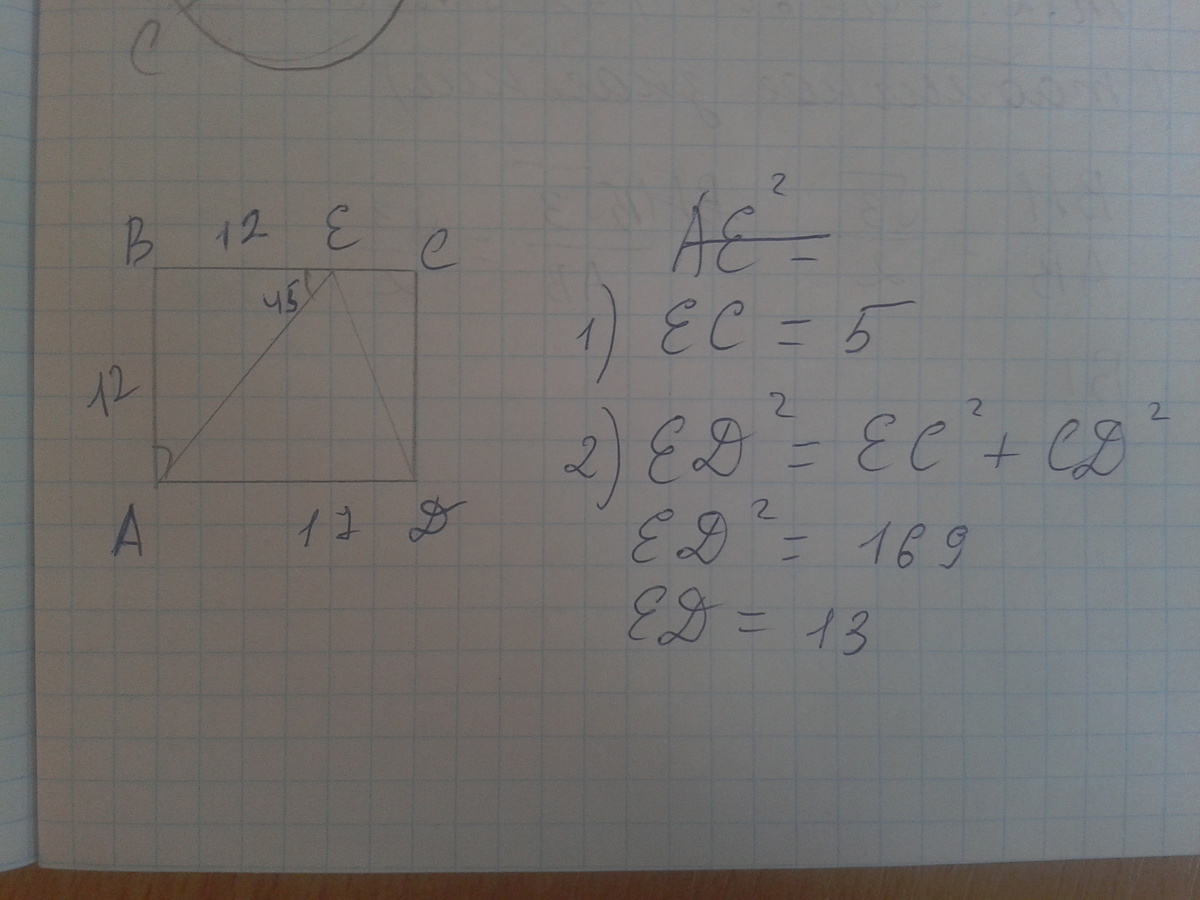 задача на стороне BC прямоугольника ABCD у которого AB=44 и AD=77 отмечена точка E так что угол EAB=45 найти ED решение задачи