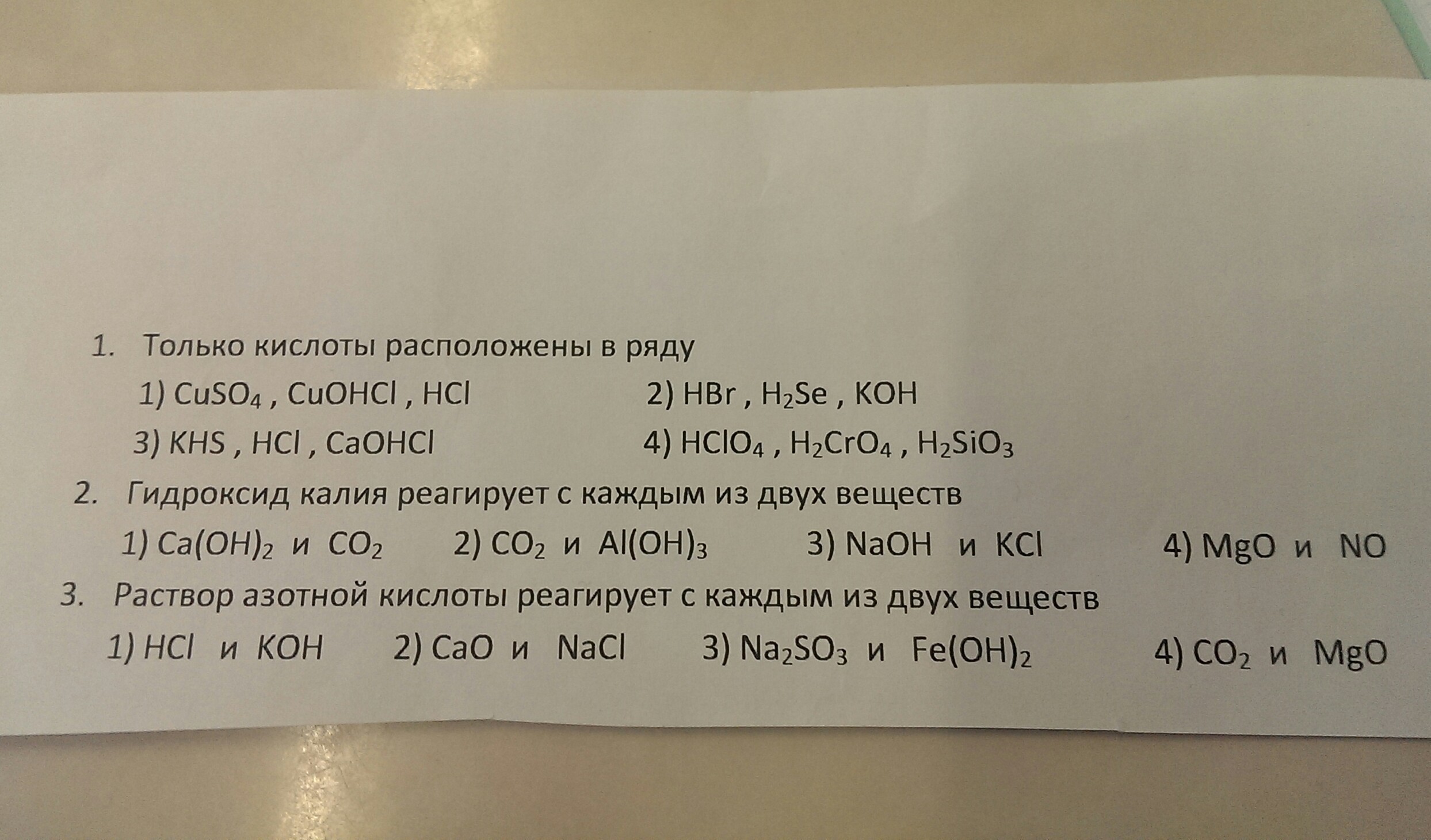 помогите, пожалуйста. во втором для *выбранного ответа написать 1 ур. полное и сокращенное ионное уравнение