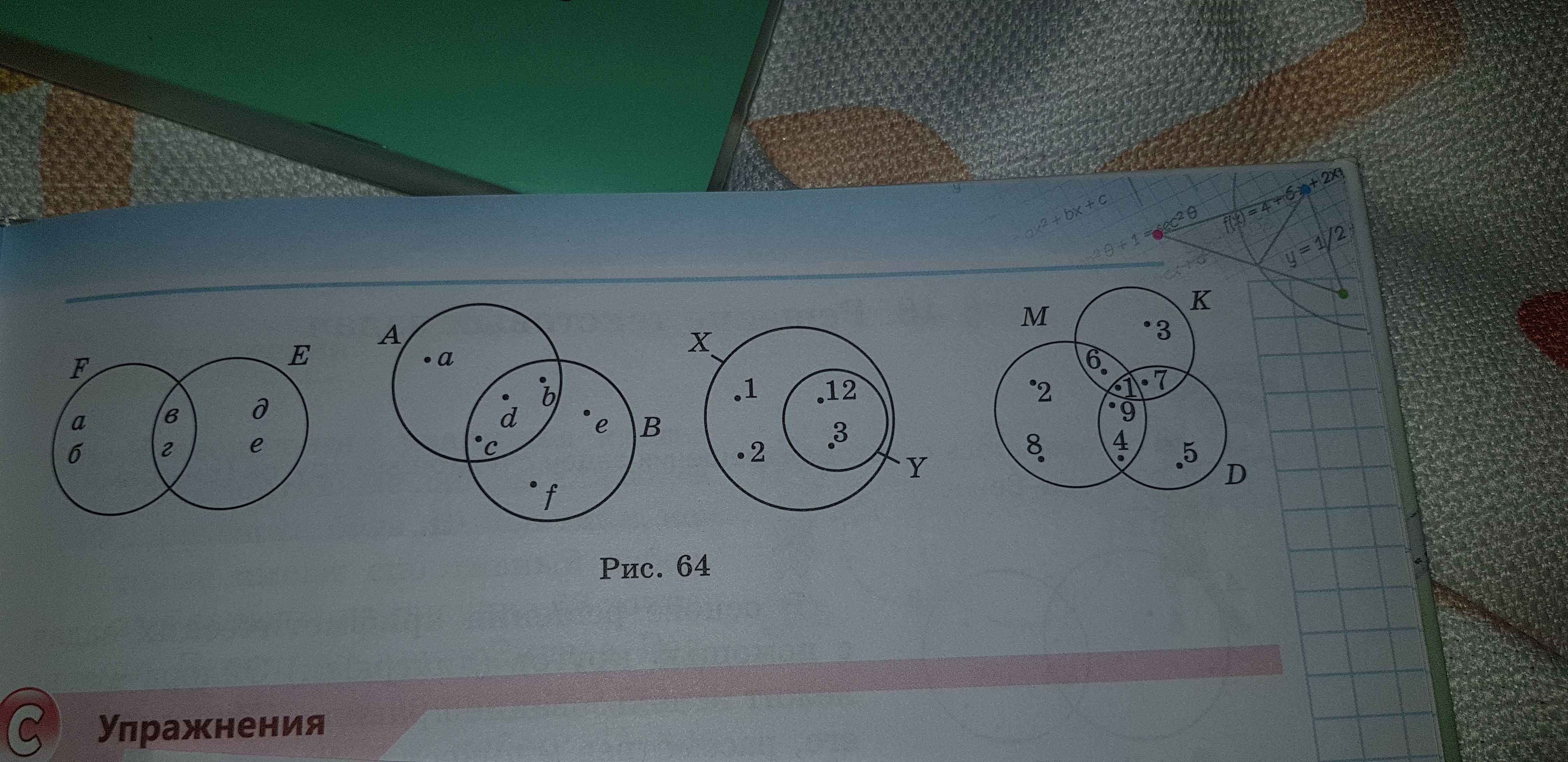 перечислите элементы объединения и пересечения множеств, изображенны на рисунке 64.помоги пожалуйста Прошу Вас умаляю