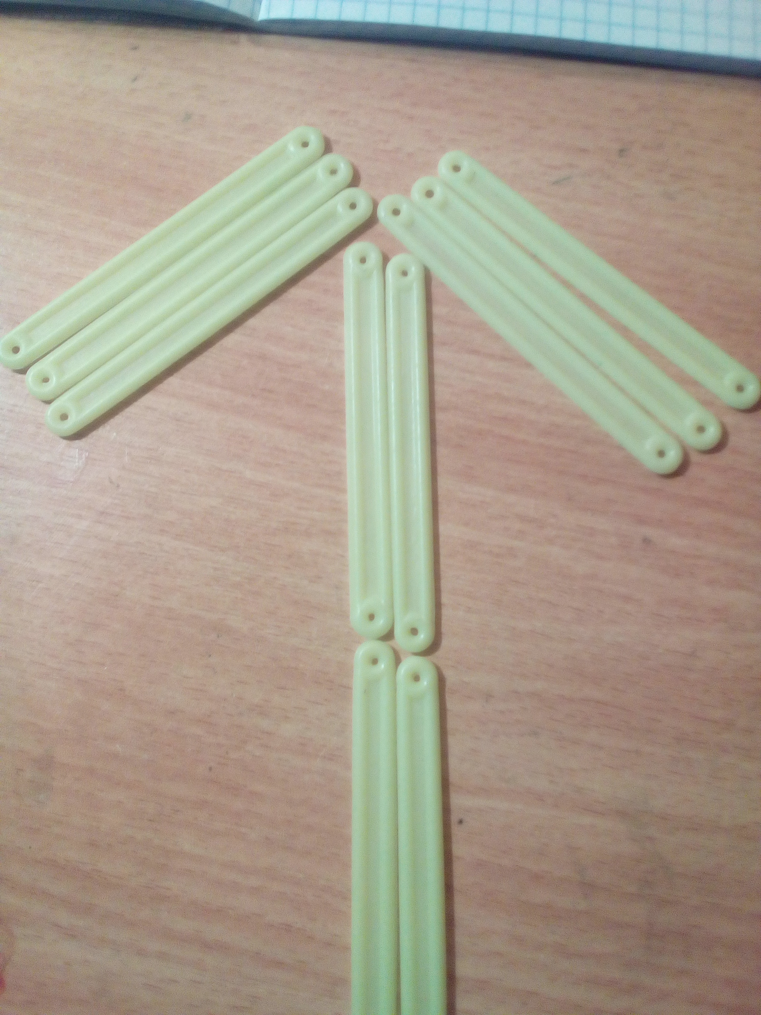 Просто от стрелочки 2 палочки переложи от стержня а потом поверх по центру положи ещё 2